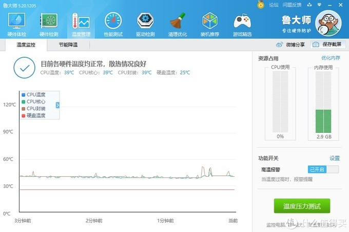 用鲁大师跑了下温度和整机性能。