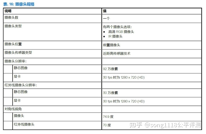 其可选高清RGB摄像头和IR(红外)摄像头,官方规格如图表所示。
