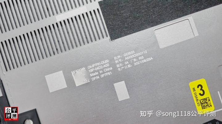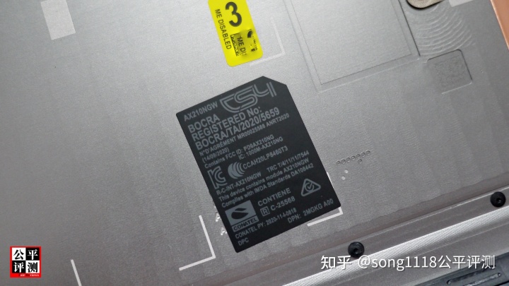 靠近散热进气格栅的一侧,还有一张提示可以去掉的FCC相关信息说明标签。