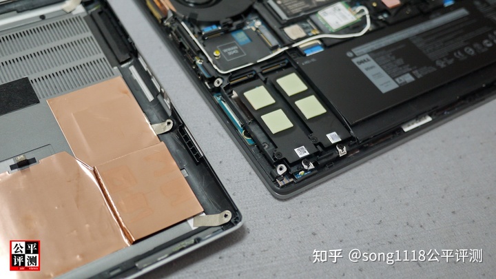 WWAN卡槽下方,是7560另外两个M.2SSD卡槽所在,出厂空置,但预留了散热片和硅脂垫。此两插槽PCIe传输模式只支持到3.0 。