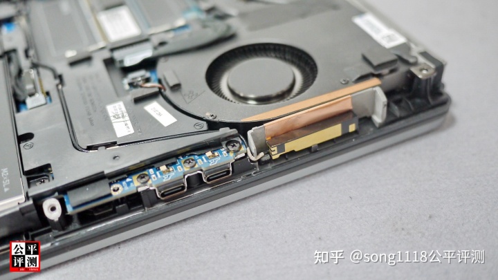 另一侧是CPU部位,包含和GPU共用的一根热管,同样是两根热管。