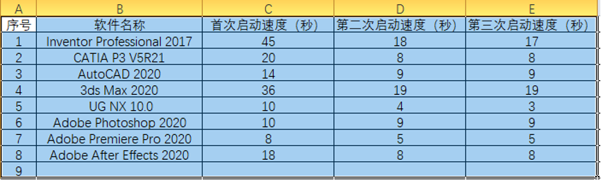 下表是部分软件启动速度列表.表中所示数据只针对本台电脑测试当时的情况有效,所测数据可能存在一定人为误差,本人对表中所示数据负责,确保真实有效。