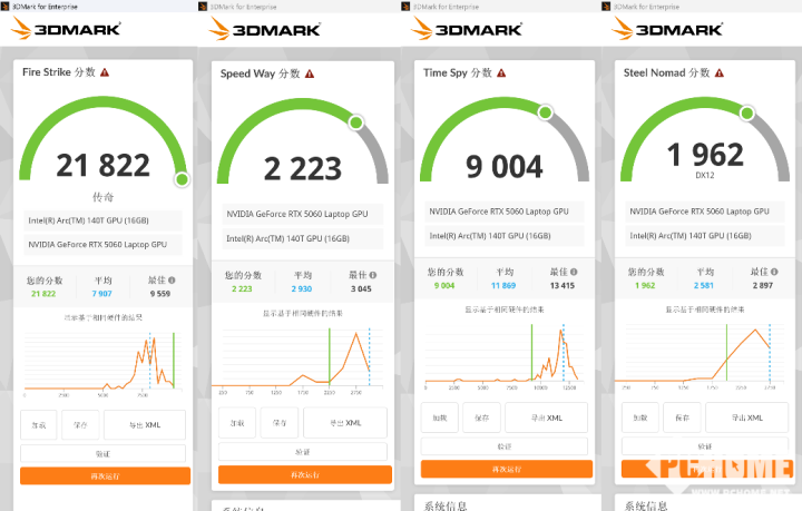 在3DMARK的图形性能测试,RTX 5060获得高达21822分的Fire Strike成绩,在TimeSpy、SpeedWay等场景中也有不俗表现,也让这台轻薄本拥有了游戏本级别的性能,用来畅玩一些热门游戏也是没有问题的。